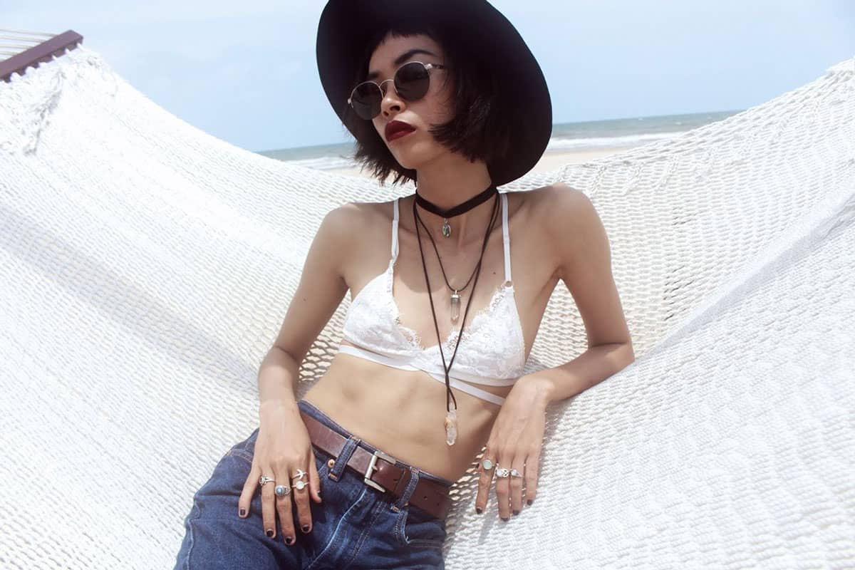 Fashion on the beach sunbathing for girls