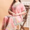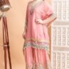 - BOTTOM WEAR: Matching palazzo pants with elaborate floral embroidery patterns and multi-colour border detailing in pink and golden hues