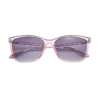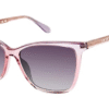 • Purple crystal to pink fade front with purple glitter accents and shiny silver plated signature lip wire in pink crystal transparent temples