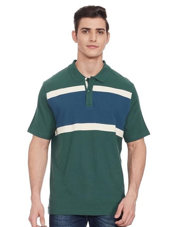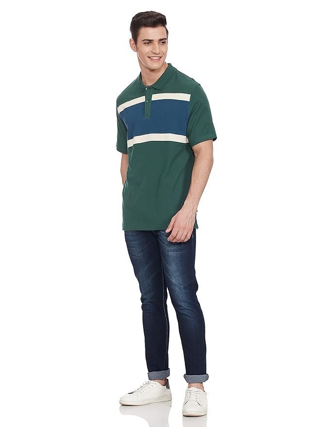 Marks & Mens Striped Cotton Polo Neck Regular Fit T-Shirt