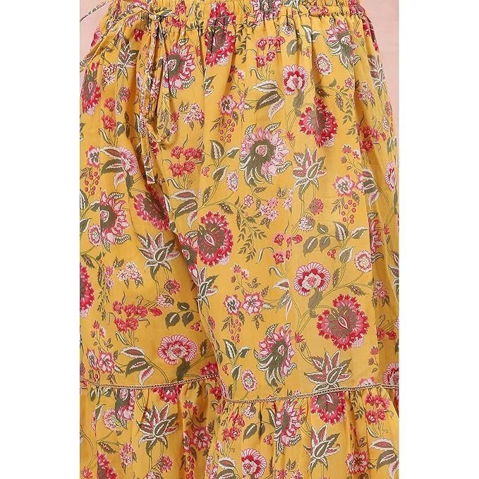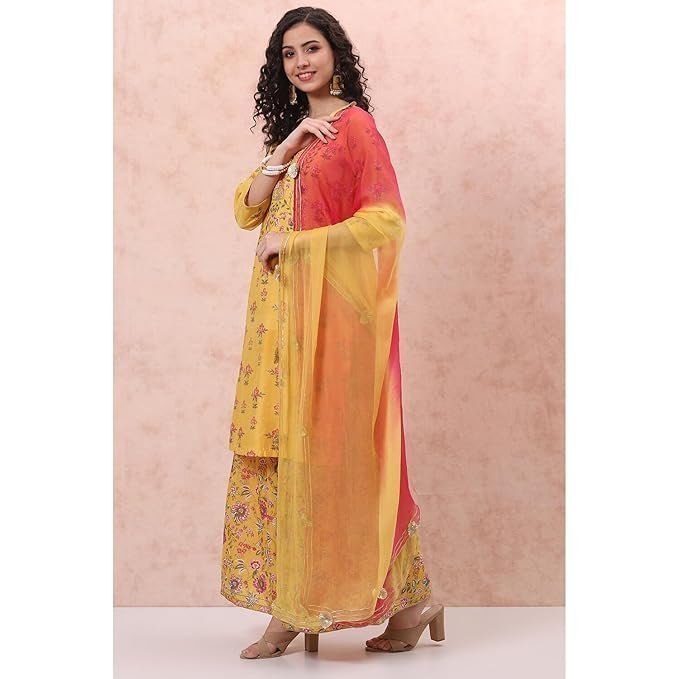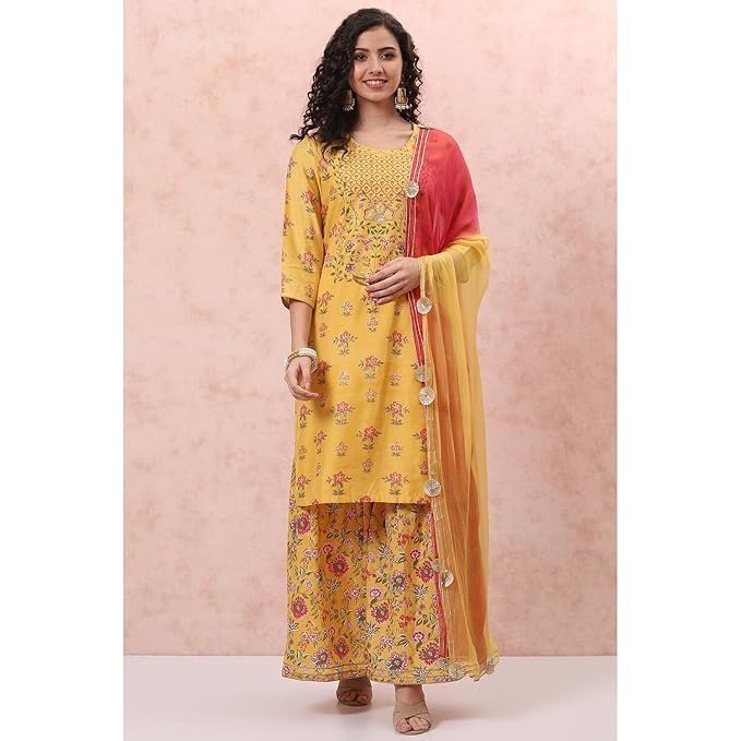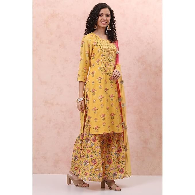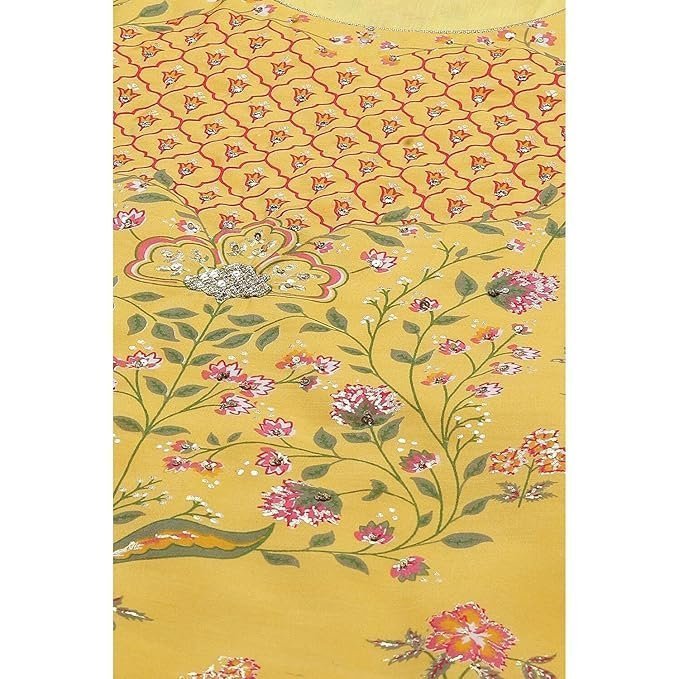 Rangriti Women Polyester Printed Suit Set (RSKASSORTED17159_Yellow_XL)