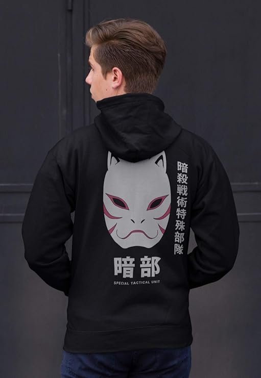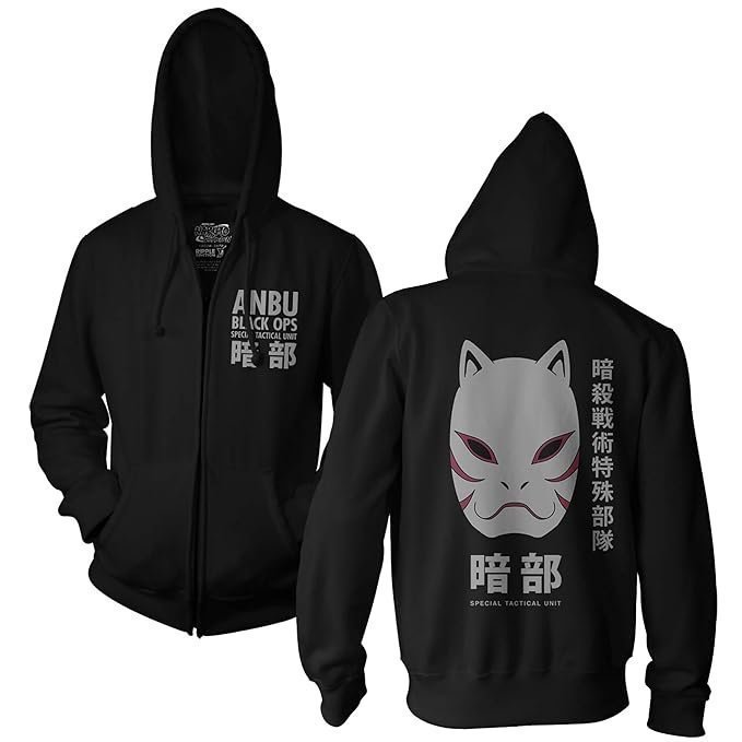 shippuden Anbu Black OPS Adult Zip Hoodie Large Black