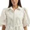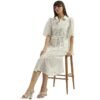 UNITED COLORS Spread Collar Schiffli Embroidered Shirt Dress