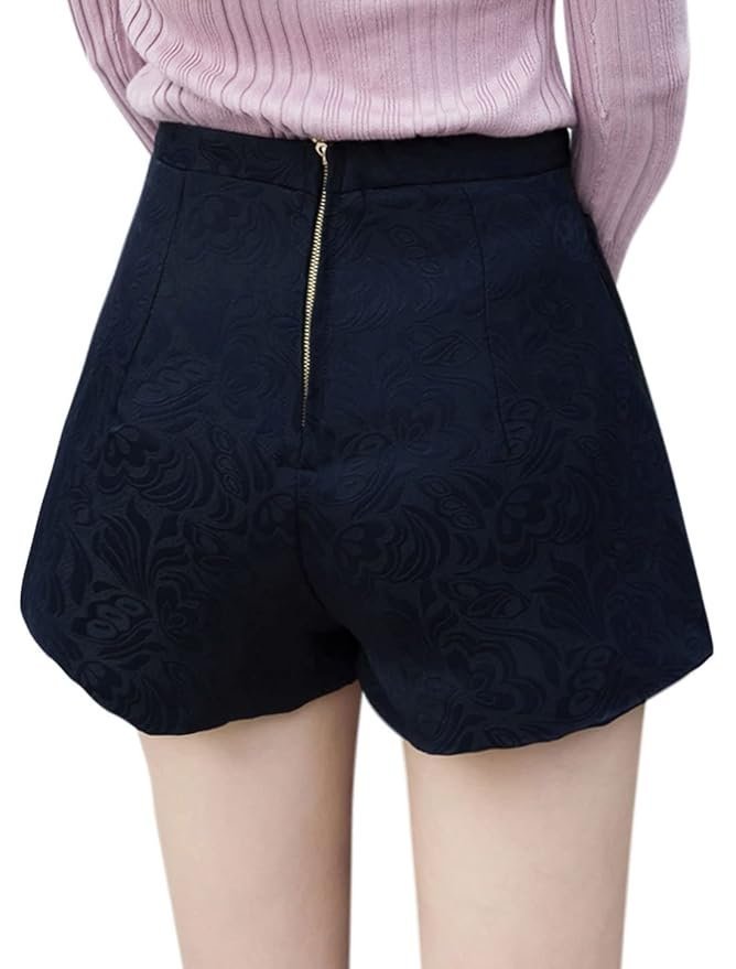 Women High Waist Floral Jacquard Two Pockets Padded Shorts