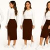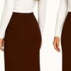 Women’s Elastic Waist Pencil Bodycon Midi Skirt – Women’s Imported Stretchable Skirt Elastic Waist Stretch Bodycon with Calf Length